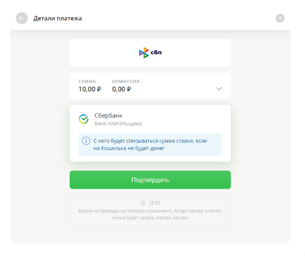 Когда вы нажмете «Подтвердить» на экране оплаты в Кошельке ЦУПИС, появится сообщение о запросе на списание 10 ₽. Запрос придет от вашего банка в виде уведомления в банковском приложении или СМС. Это зависит от вашего банка и от того, пользуетесь ли вы его приложением.
